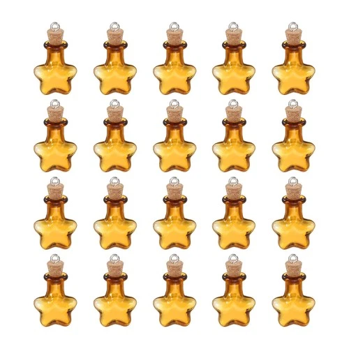 20 Pcs Small Star Mini Glass Bottles Jars with Cork Stopper Eye Screw, Champagne