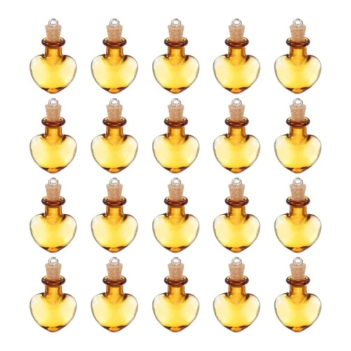 20 Pcs Heart Mini Glass Bottles Jars with Cork Stopper Eye Screw, Champagne