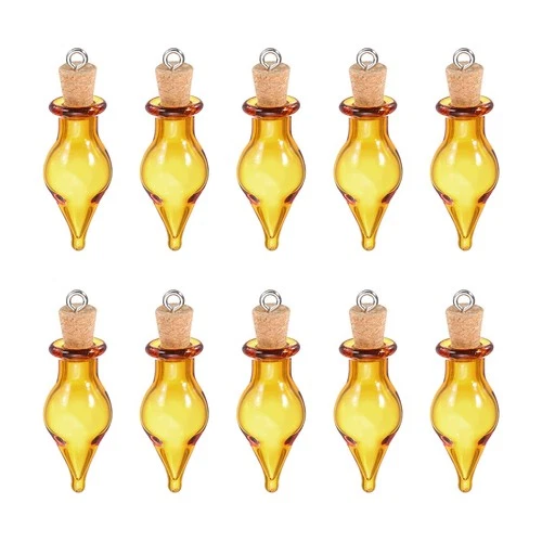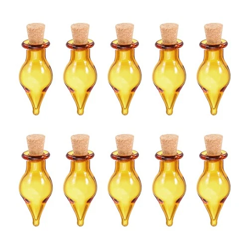 10 Pcs Small Cute Teardrop Mini Glass Bottles Jars with Cork Stopper, Orange