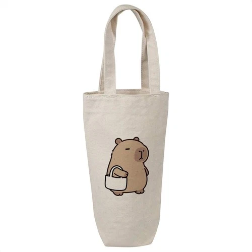 'Capybara with Tote Bag' Cotton Wine Bottle Gift / Travel Bag (BL00049605)