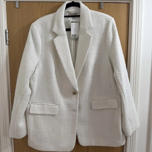 Ladies H&M White Boucle Style Jacket Blazer Size large BNWT