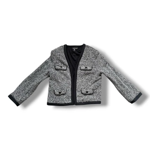 Topshop Women's Cropped Tweed Boucle Jacket Black White Trim Size UK 6 / US 2