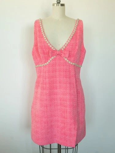 Self-Portrait Pink Boucle Mini Dress w Pearl/Crystal Detail, UK 14, Pre-Loved