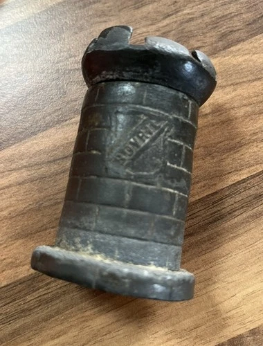 Rare Vintage Embossed Bovril Shield Design Pewter Metal Castle Pepper Pot Mill