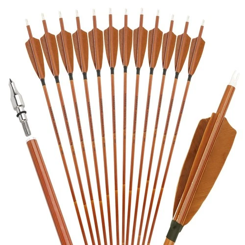 12PCS SP500 Carbon Arrow 4" Feather 30" Shaft Archery Recurve Bow Target Hunting