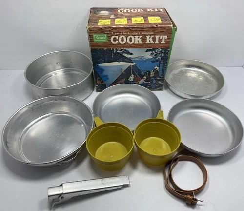 Vintage 70’s Sears 6-74151 2-Party Backpackers Aluminum Cook Kit 9-Piece w/ Box