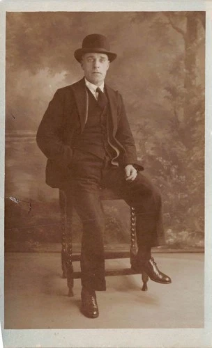 Man Sitting On Table Derby Hat Studio People Postcard (472)