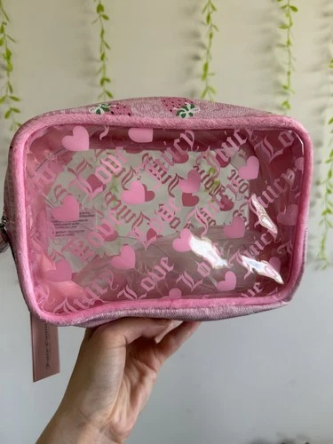 Juicy Couture Clear Pink Bow Strawberry Print Travel Organizer