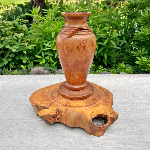 Vintage Japanese Hand-Carved Wooden Flower Vase Integrated Base Rare Collectible