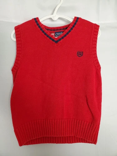 Chaps 100% Cotton Red Sweater Vest With Blue Trim & Logo Boys Size 4/4T