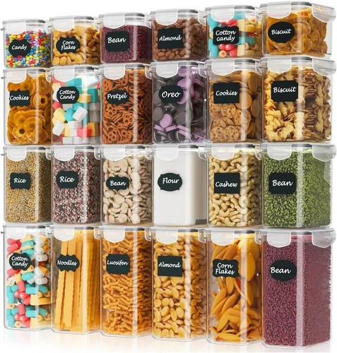 24 Pack Airtight Kitchen Food Containers – BPA-Free Cereal Storage Containers &