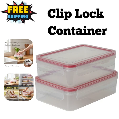 2 Pack Food Storage Containers 500ml Airtight Clip Lock BPA Free Plastic Clear