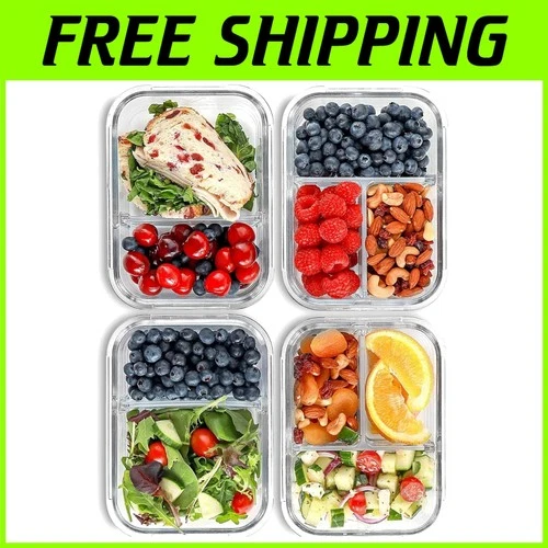 Airtight Glass Food Storage Containers, 2 & 3 Compartments