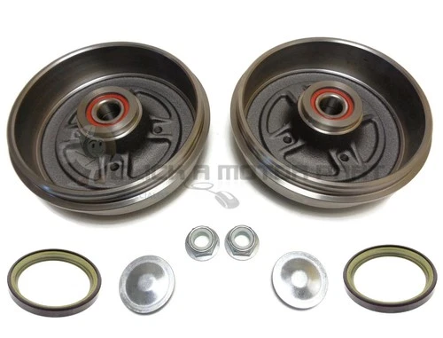 Rear 2 Brake Drums With Fitted Wheel Bearings + ABS Rings For Nissan Note 06-12
