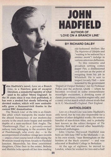 JOHN HADFIELD IN PRINT : THE IMAGINATION BEHIND LOVE ON A BRANCH LINE. BY RICHAR