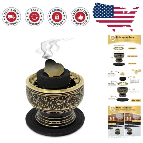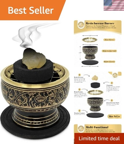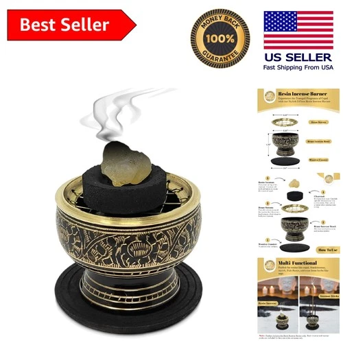 Decorative Brass Incense Burner with Charcoal Screen & Coaster - 2.5" Luxury