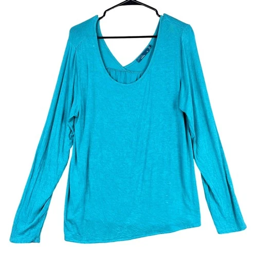 PrAna Womens Shirt Blue Long Sleeve Breathe Round Neck Loose Stretch XL