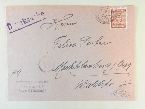 SBZ printed matter EF 126 Leipzig to Markkleeberg 1945