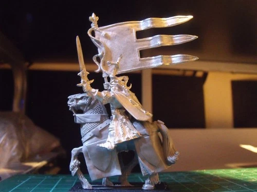 Kingdom Of Bretonnia Battle Standard Bearer On Warhorse. Metal OOP Limited Ed.