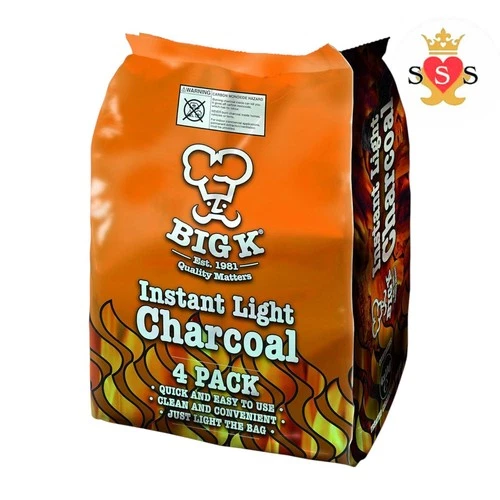 Big K Instant Light Lumpwood Charcoal, 4x1kg Bags Instant BBQ Charcoal