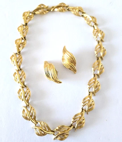 Vintage Napier Gold Tone Leaf Necklace & Earrings Set Signed Classic Versatile