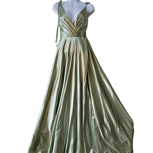 Oh Hello Sage Green Satin Maxi Dress M Tie Strap Formal Bridesmaid Flowy A-Line