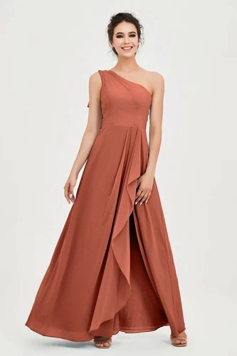 Duntery Gianna One Shoulder Bridesmaid Dress Rust Size 8 Custom Hem 5’4"