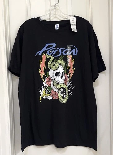 Poison Rock Band T Shirt Short Sleeve Skull Snake Graphic Print Size XL