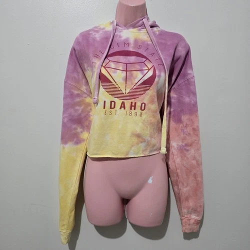Brisco Brands - Size L - Sweater - Cropped Hoodie Tie Dye Idaho - Pink Yellow