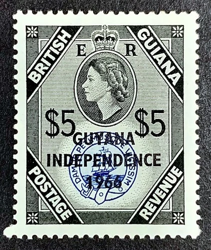 BRITISH GUIANA/GUYANA QEII 1966 $5 Ovpt. Ultramarine & Black SG #398 Mint MLH