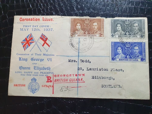 British Guiana 1937 First Day Cover w/King George VI Coronation Stamps #3327