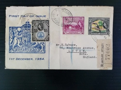 1954 British Guiana £1,£2 & £5 defs. on illustr. FDC