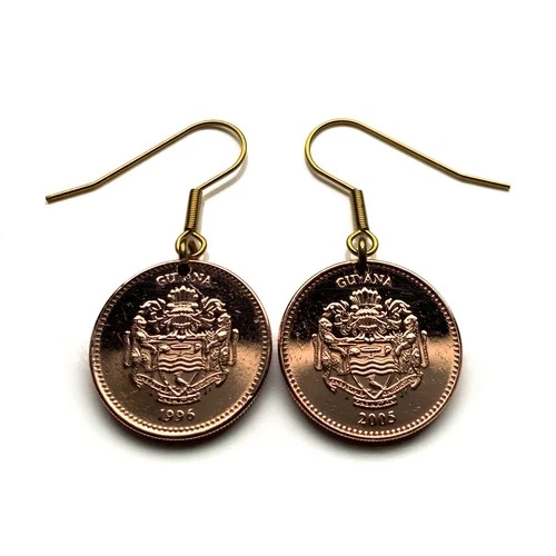 Guyana British Guiana 5 coin earrings jaguars Cacique's Crown Georgetown e000694