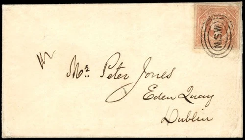 New South Wales, 1s red tied to neat 1859 cover, Sydney to Ireland, BPA cert, VF