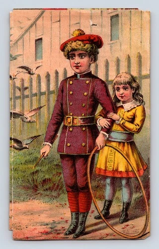 Broadhead Worsted Mills Boy Girl Rolling Hoop Jamestown NY Victorian Paper Ad