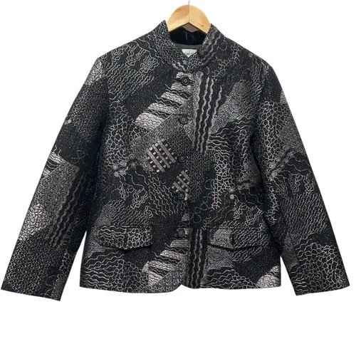 Chicos 2 Women Jacket L Black Metallic Artwear Textured Brocade Statement Glam