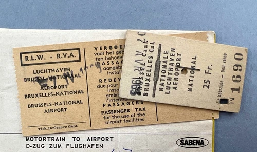 BEA BRITISH EUROPEAN AIRWAYS TICKET BRUSSELS BELGIUM DEPARTURE TAX REVENUE STAMP