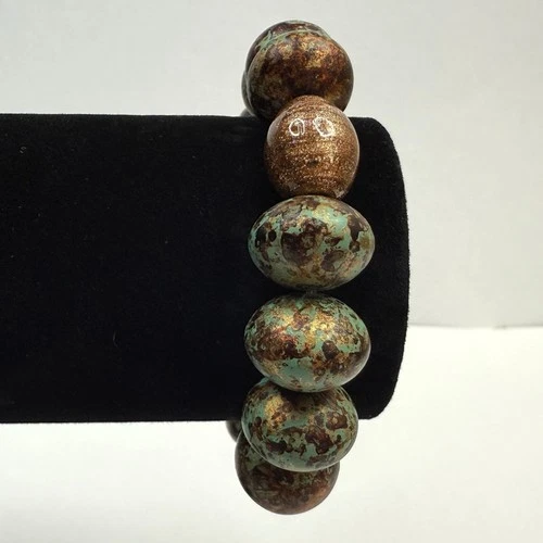 Turquoise Beaded Bracelet Glass Bronze Accent Beads Green & Brown Jewelry Sz 6
