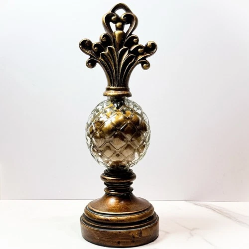 Ornate Bronze Gold Decorative Finial Accent Glass Orb 11” Vintage Style