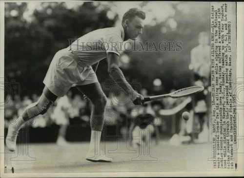1953 Press Photo Vic Seixas competes in tennis event in Brookline, Massachusetts