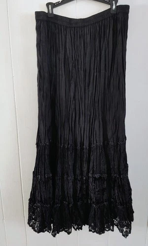 VTG White Stag Black Broomstick Maxi Skirt Witchy Whimsigoth Lace Trim M 8/10