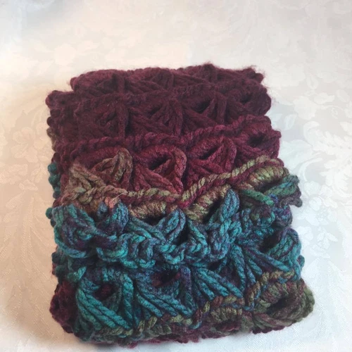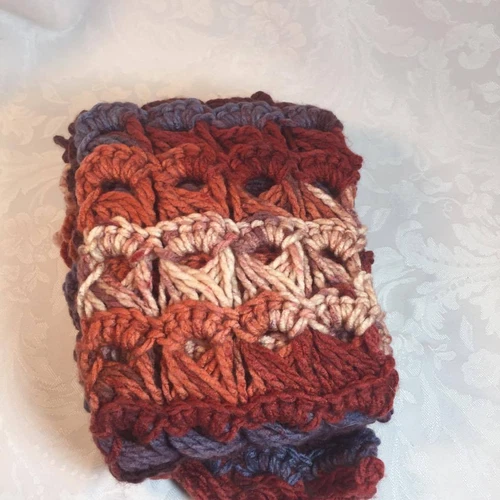 Peacock Scarf Broomstick Lace 100% Acrylic Yarn Crocheted Handmade Fall colors