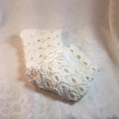 Handmade Crocheted Peacock Snow White Scarf Broomstick Lace 100% Acrylic Yarn