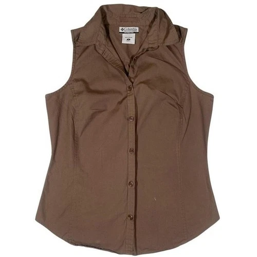 Columbia Hiking Sleeveless Button Up Tank Top Shirt Women's Brown Tan Medium Y2K