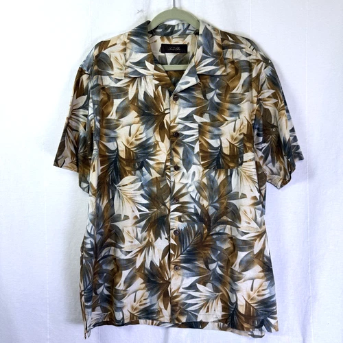 Tasso Elba Camp Shirt Men's Size L Brown 100% Silk Tropical Leaf Print Button Up