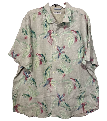 Tommy Bahama Men's 2XL Brown 100% Linen Short Sleeve Button Up Camp Aloha Shirt