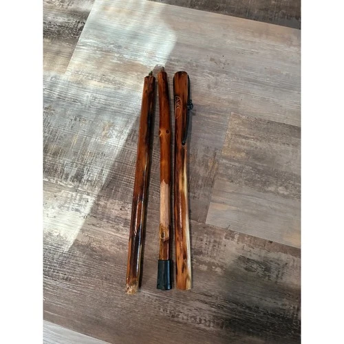 Handcrafted 3 Piece Collapsible Wooden Walking Stick Hiking Staff Carved Leaf