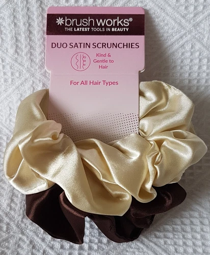 Satin Hair Scrunchies (Pack of 2) ~ Cream & Brown ~ Brushworks ~ NEW