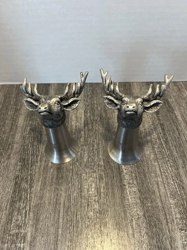 Jagermeister Shooter Shot Glasses Metal Pewter Deer Stag Buck Head Set Of 2