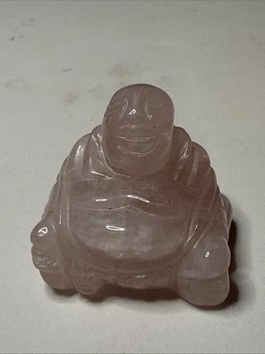 Rose Quartz Laughing Buddha Statue/Figurine Approx. 1” -C4